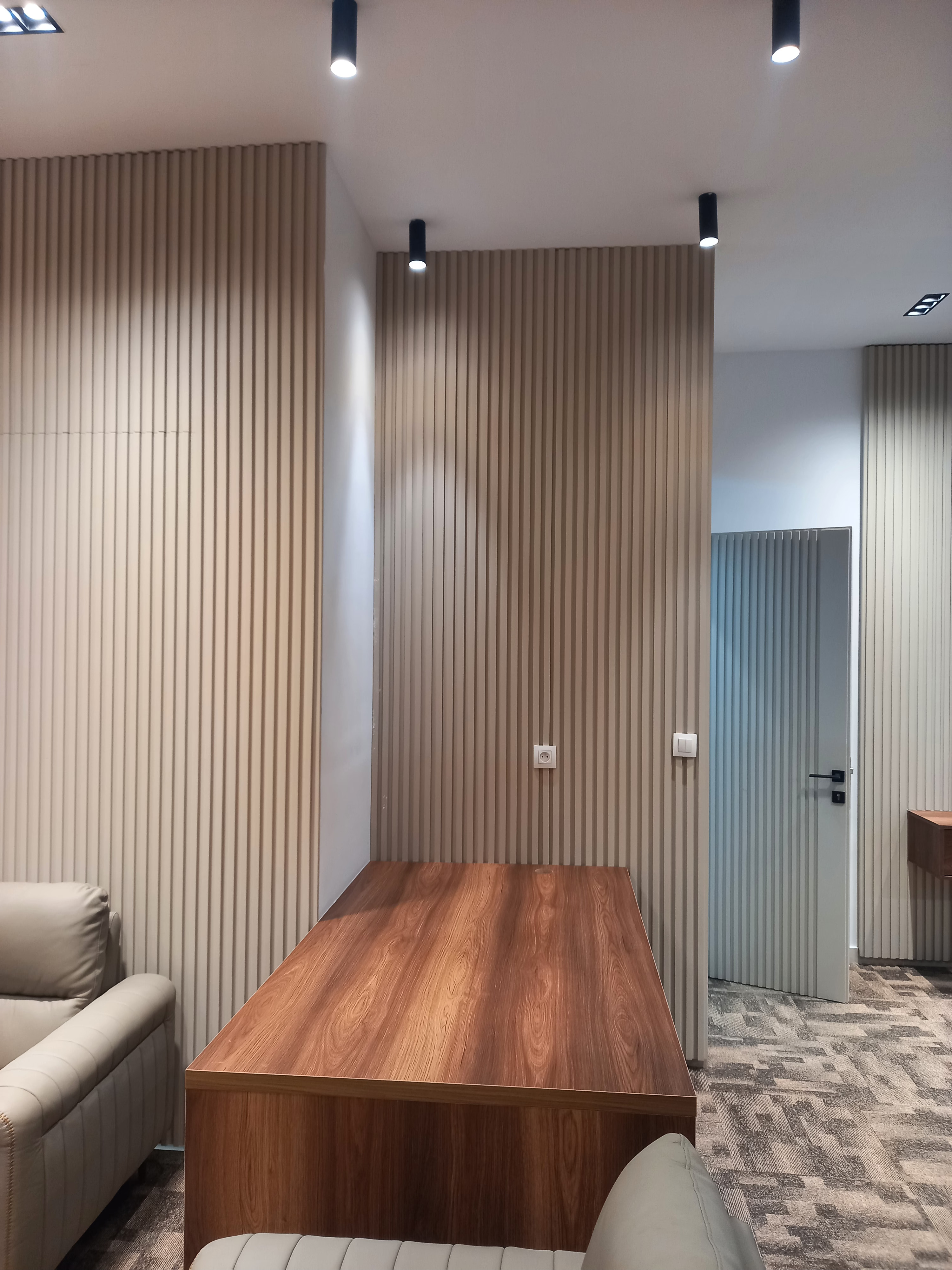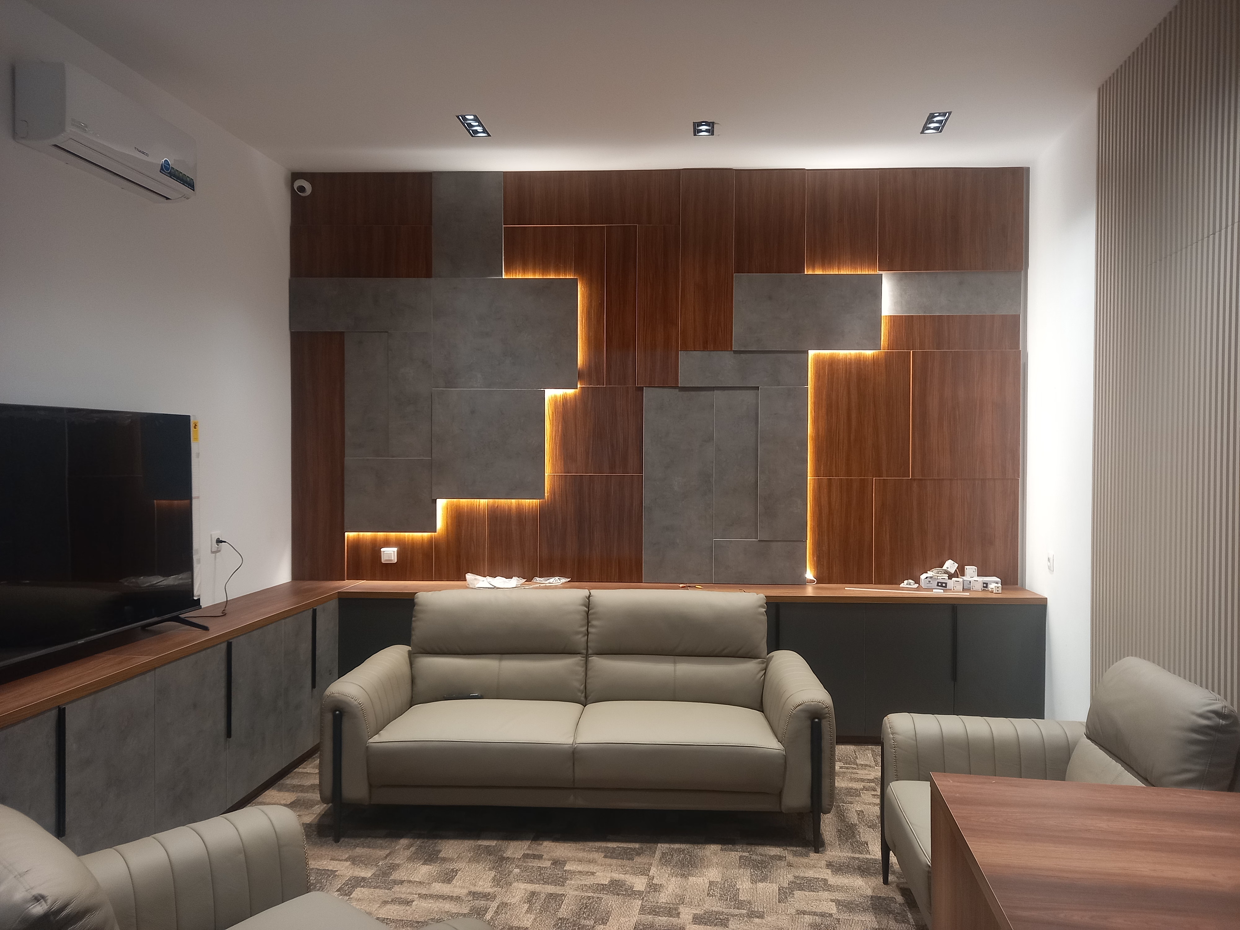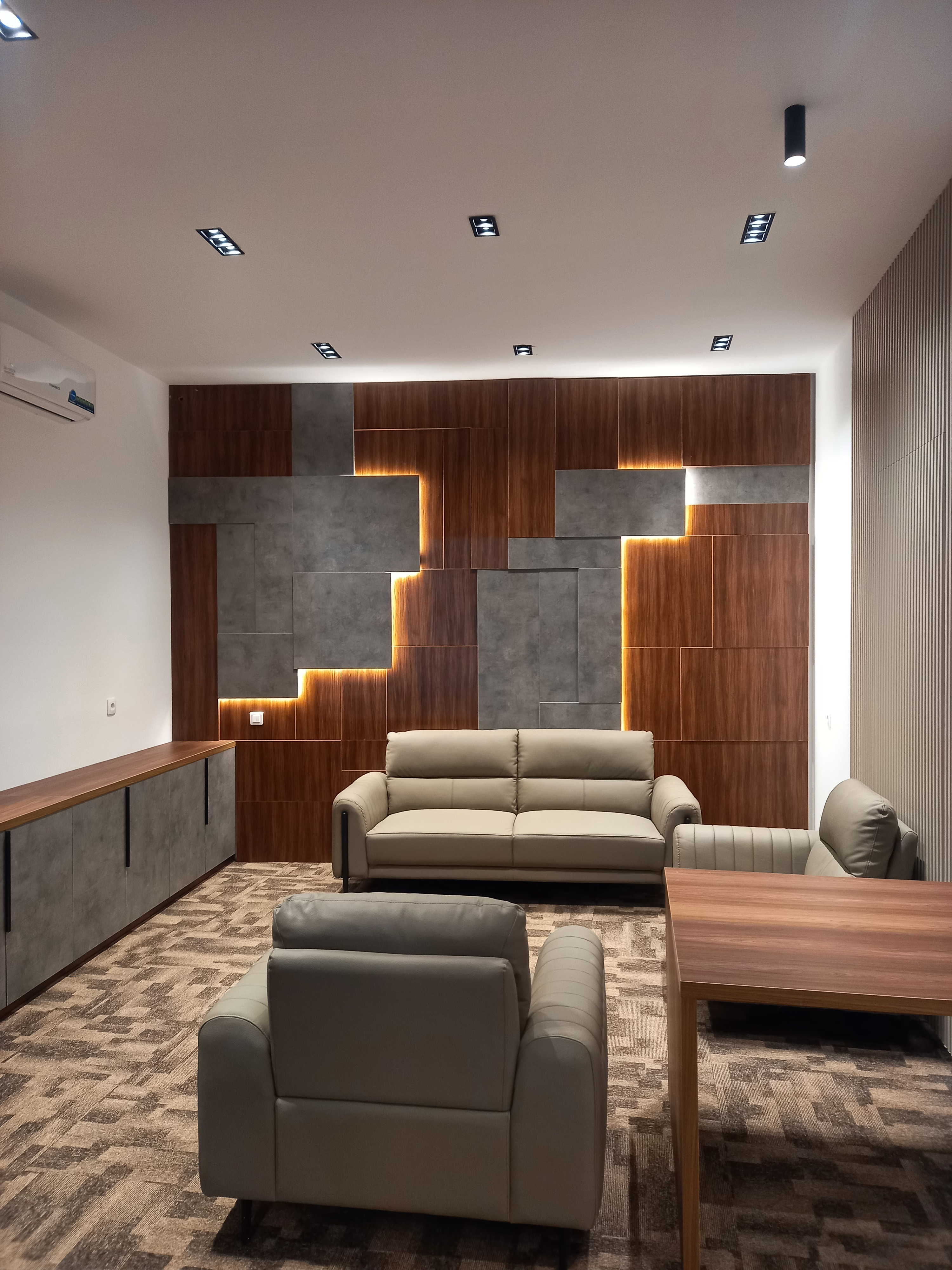 Design and execution of a bespoke private office space, including complete interior fit-out. The project featured custom handmade furniture, detailed ceiling and lighting design, and high-quality floor finishes. This achievement highlights our expertise in delivering tailored, functional, and aesthetically refined work environments.